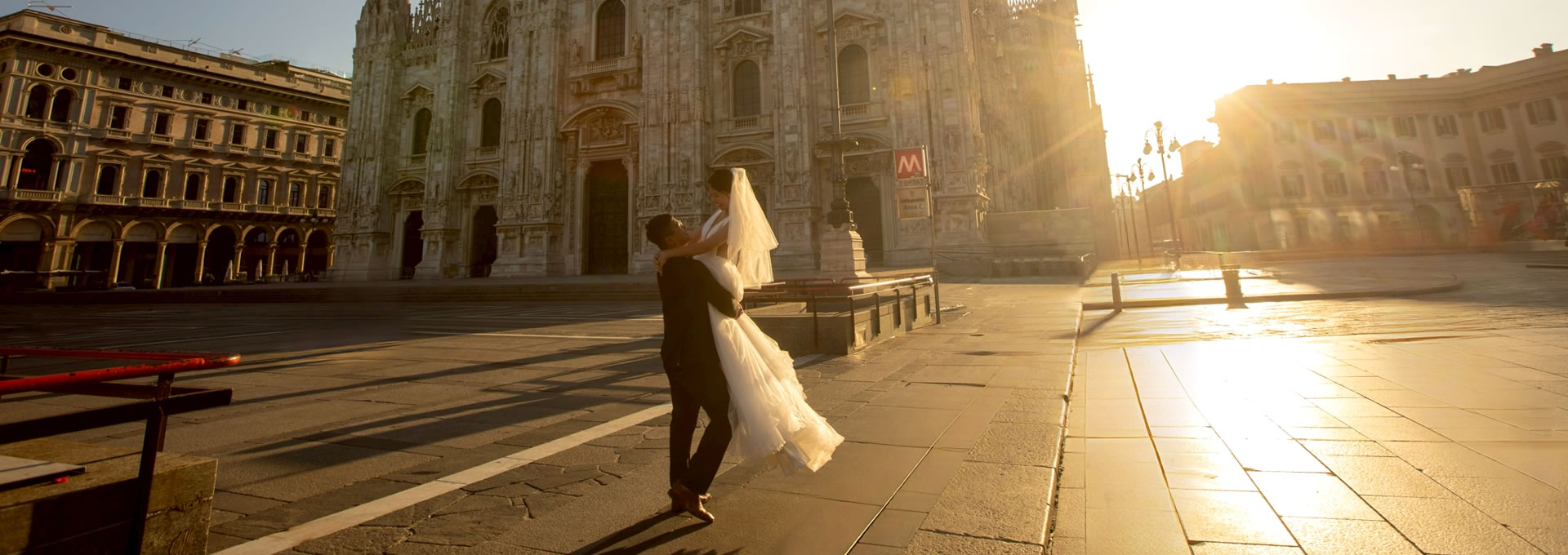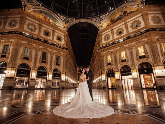 是浪漫細節的集合地。壯麗的米蘭大教堂、古典迴廊與石板街道,在光影流轉間勾勒出高級而純粹的氛圍。白紗與西裝在歷史建築前輕柔飄動,每一個眼神、每一次牽手,都像走進義大利電影的經典畫面。